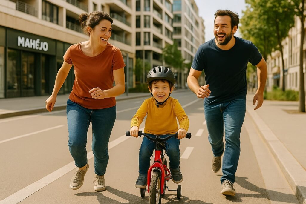 On a fait le tour du quartier. Plusieurs fois. On a couru, transpiré, négocié, hurlé « Attention ! » dans toutes les tonalités possibles. Mon conjoint tentait d’apaiser le trafic (et moi), pendant que je courais derrière le guidon rebelle en criant : « Les pédales ! Mets tes pieds sur les pédales ! Non pas comme ça ! » Il se marrait. Il se donnait à fond. Il était heureux. Vraiment.